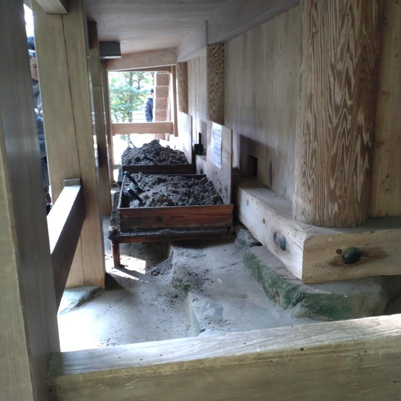その本殿の裏に素鵞社(そがのやしろ)があります。ちゃんと挨拶をして、更にその裏にまわります。するとお砂を入れ替える箱があります。下の写真